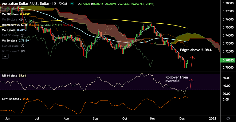 Major Support Levels: 0.7065 (5-DMA), 0.6995 (Lower BB)