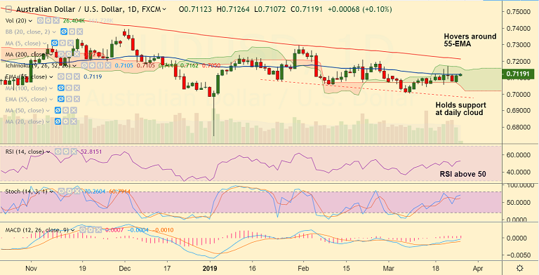 Support levels - 0.7107 (5-DMA), 0.7098 (21-EMA), 0.7050 (cloud base)