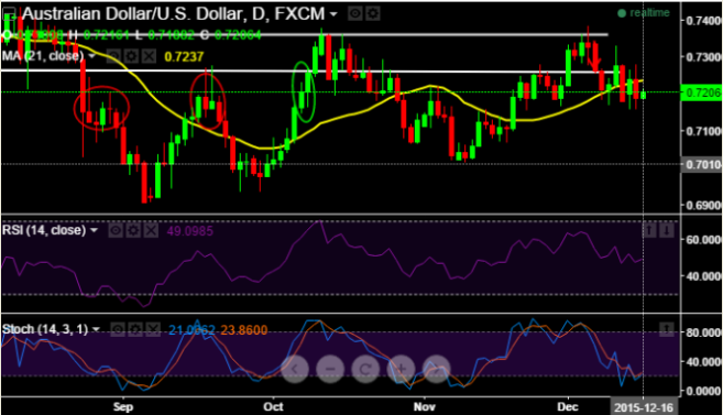On speculative grounds, at current spot FX levels of 0.7205 one touch delta calls are recommended for targets of 20-25 pips (i.e. 0.7235 levels), the prime merits of such one touch option are high yields during high volatility plays.