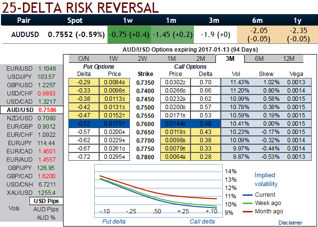 As a result, we can understand ATM puts have been costlier where the spot FX market direction of this pair is heading towards 0.7533 technical levels. So, the speculators and hedgers for bearish risks are advised to optimally utilize the upswings and bid on 3m skews in implied volatilities and 6m risks reversals.