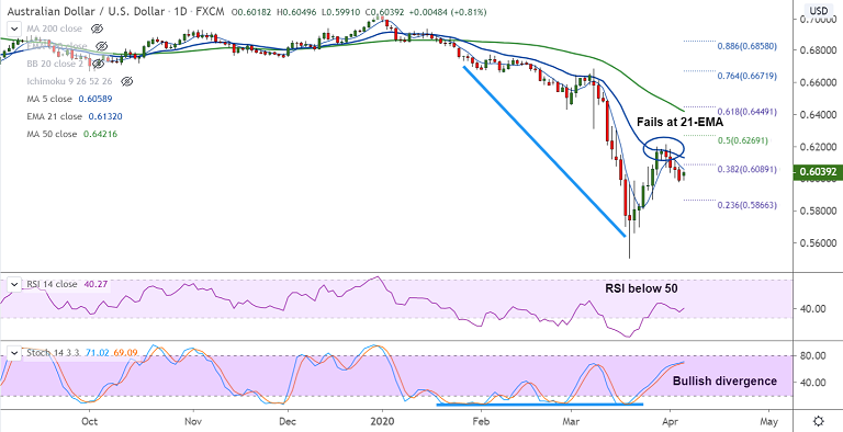 5-DMA is immediate resistance at 0.6058. Break above 21-EMA could change near-term dynamics.
