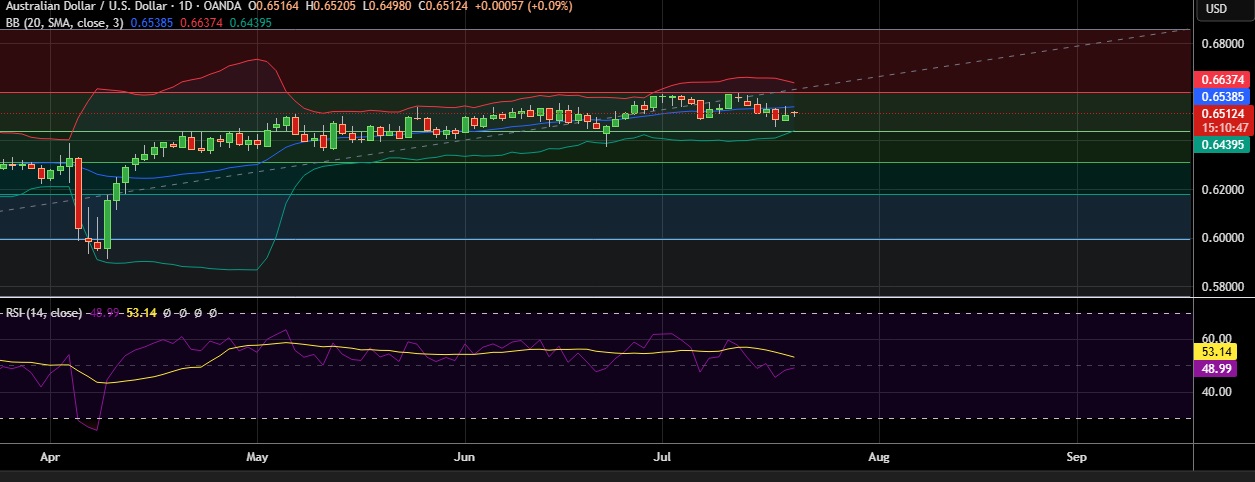• Immediate resistance is located at 0.6550(SMA 20), any close above will push the pair towards 0.6599(23.6%fib )