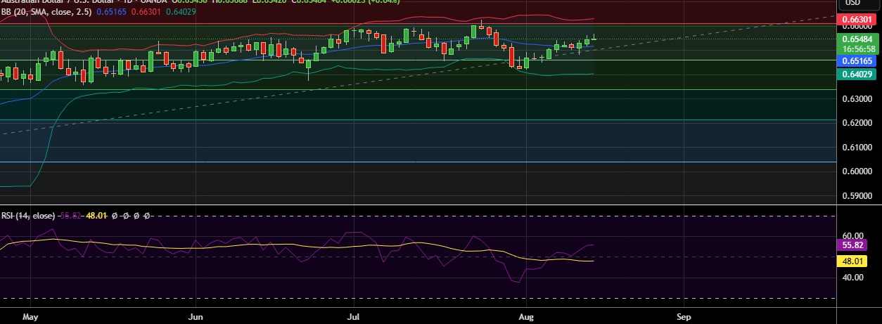 • Immediate resistance is located at 0.6611 (23.6%fib), any close above will push the pair towards 0.6634(Higher BB)