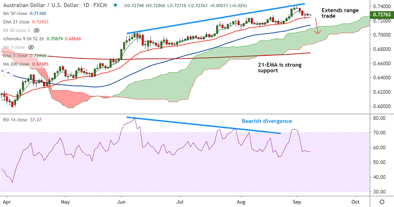 AUD/USD was extending range trade for the 3rd straight session, bias neutral.
