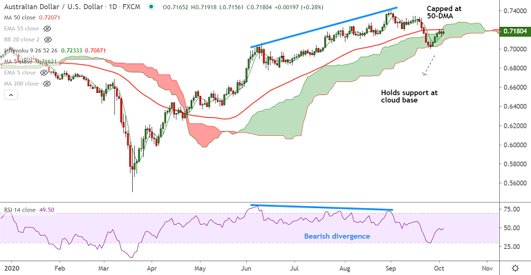 On the flipside, 55-EMA is immediate support at 0.7147. Retrace below will see dip till 110-EMA at 0.7021.