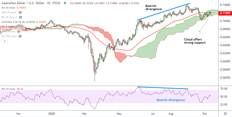 Support levels - 0.7152 (55-EMA), 0.7123 (Cloud base), 0.71