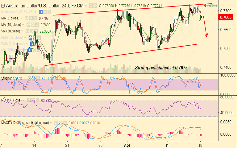 Recommendation: Good to sell rallies around 0.7675, SL: 0.7730, TP: 0.7650/0.7620/0.76