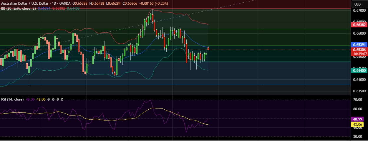 • Support is seen at 0.6500(Psychological level) and break below could take the pair towards 0.6478 (61.8%fib).