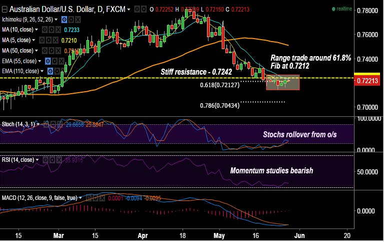 - Pair finds major resistance at 0.7242, upside potential only on decisive break above. While 0.72 (5-DMA and psychological level) is immediate support.