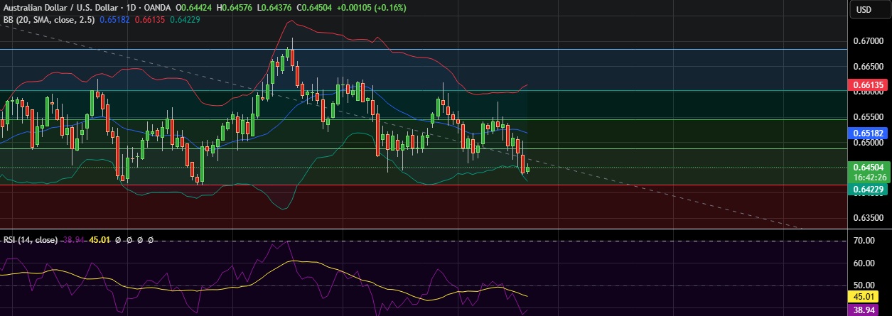 • Support is seen at 0.6439(Daily low) and break below could take the pair towards 0.6416 (23.6%fib).
