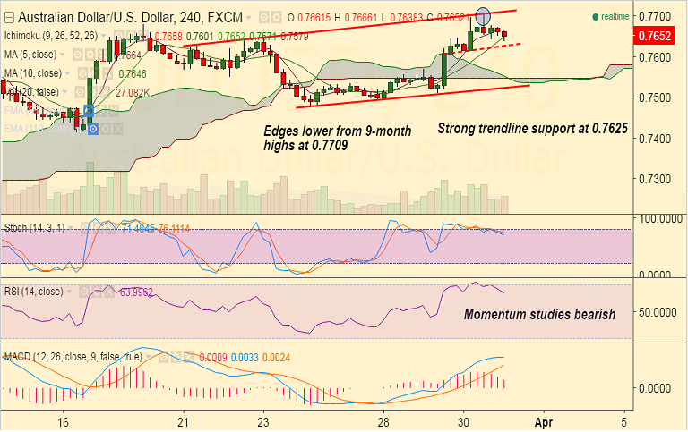 FxWirePro: AUD/USD off the 9-month highs of 0.7709, sees strong support at 0.7625