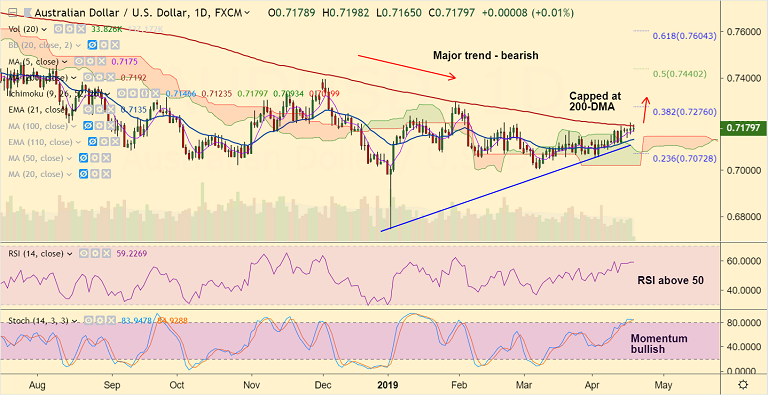 Support levels - 0.7175 (5-DMA), 0.7152 (110-EMA), 0.7126 (55-EMA)