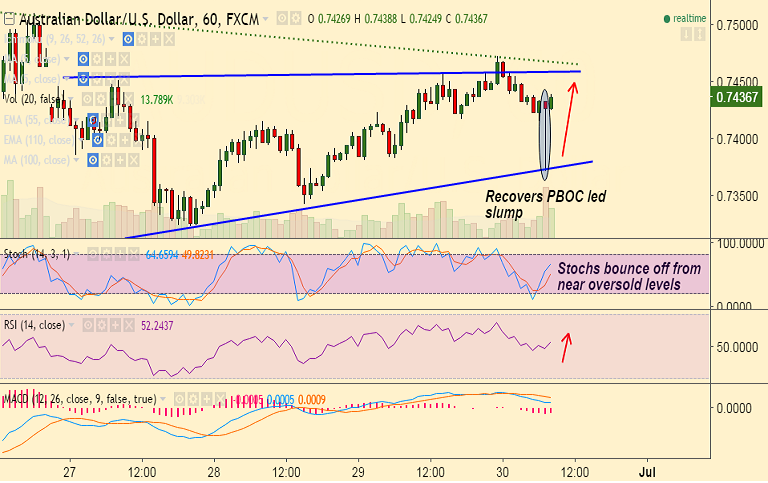 - The pair has since pared most of the losses and has reclaimed the 0.74 handle and is currently trading around 0.7438 levels.