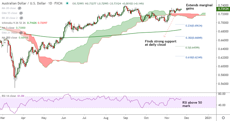 AUD/USD has covered up the slight bearish gap open on Monday's trade aa the Australian dollar found bids amid rising vaccine optimism and upbeat data.