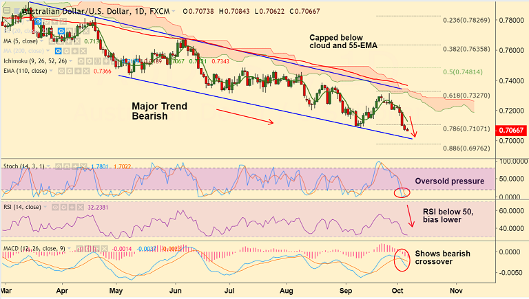 Resistance levels - 0.71 (78.6% Fib), 0.7129 (5-DMA)
