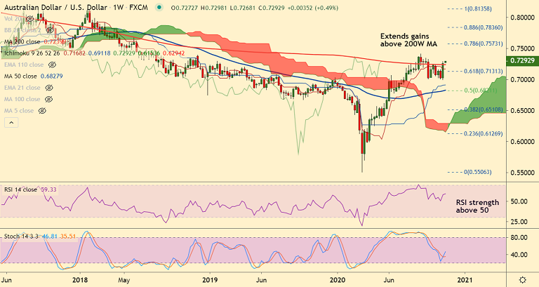 Support levels - 0.7239 (200W MA), 0.7233 (5-DMA), 0.7142 (55-EMA)