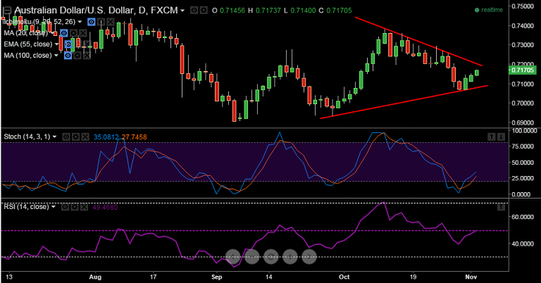 - The pair is at the time of writing testing 10-day MA resistance at 0.7170, with next immediate hurdle at 0.7187 (38.2% fibo of 0.7382/0.7067 move)