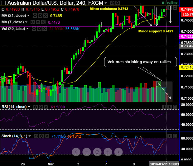 AUD/USD is failing quite often to break resistance at 0.7513, as a result we think since it doesn't manage to break above decisively which would likely create more bearish potential for aggressive speculators.