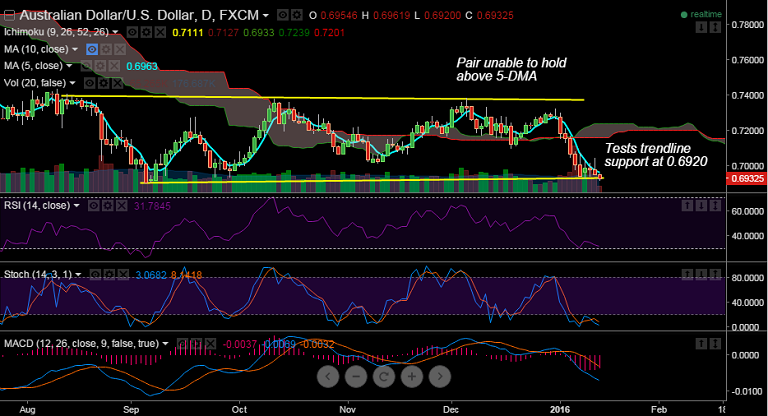 Recommendation: Watchout for break below 0.6920 to go short for 0.6855, stops then at 0.6965