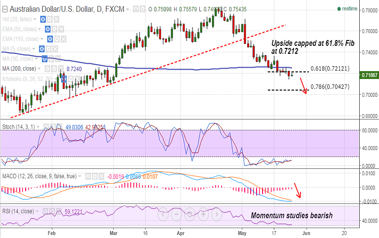 - AUD/USD's recovery from its lowest level since early March was capped at 61.8% Fib retrace level at 0.7212.