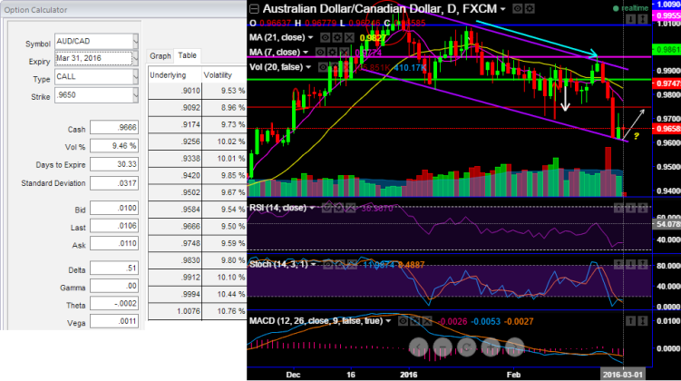 More importantly the implied volatility of AUDCAD 1M ATM contracts is at 9.46% which is mildly on higher side for option holders. The potential target on upside is about 50-100 pips where 110-120 pips on downside.
