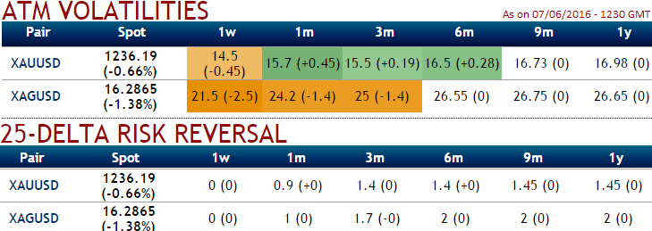 Rationale: Bidding short term neutral risk reversals with writing 2W OTM put contracts, as stated above bullion market remains safe-haven demand which is why longer tenor calls.