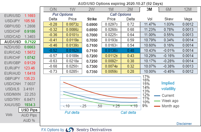 The combination of AUDUSD’s short-term higher potential amid lower IVs was luring the OTM put options writing. While the medium-term perspective is attractive for bearish hedges via ITM puts.