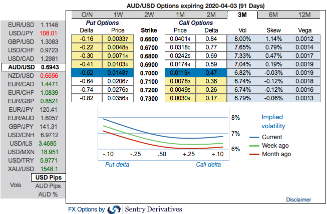 The combination of AUDUSD’s short-term potential to hit 0.70 and fails from there onwards amid lower IVs is luring for the OTM put options writers. While the medium-term perspective is attractive for bearish hedges via ITM puts.