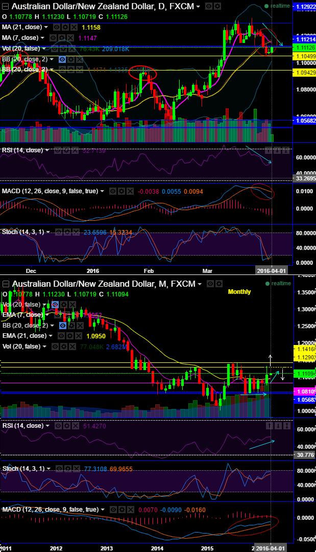 On daily chart, although we see some bounces today in AUD/NZD, it has lost buying momentum ever since it hasn't been able to hold and sustain the resistance at 1.1290 levels.