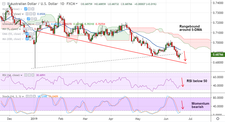 Decisive break above 5-DMA could see gains till 21-EMA at 0.6926. Break above 21-EMA to see further upside.
