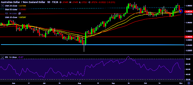 - AUD/NZD is currently trading around 1.0731 marks.