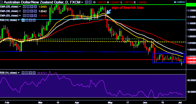 We prefer to take short position in AUD/NZD only below 1.0408, stop loss 1.0547 and target 1.0362/ 1.0231 marks.