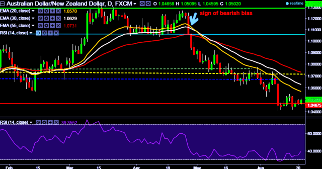 We prefer to take short position in AUD/NZD around 1.0525, stop loss 1.0572 and target 1.0416/ 1.0374 levels.