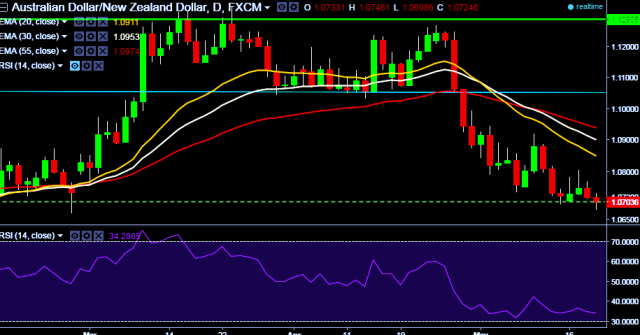 We prefer to take short position in AUD/NZD around 1.0710, stop loss 1.0783 and target 1.0574 levels.