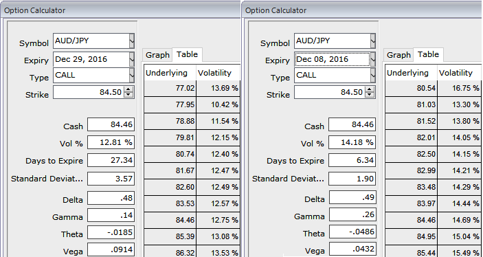 We think 1w AUDJPY IVs are rising above 14.18% having significance economic drivers (including RBA monetary policy and GDP announcements) that stimulate the turbulence of the underlying currency pair. However, 1m IVs are also reasonably on the higher side at 12.81%.