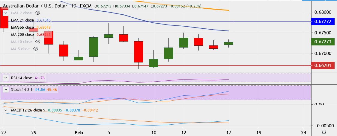 - Immediate resistance is located at 0.6737, a break above could take it near 0.6755.