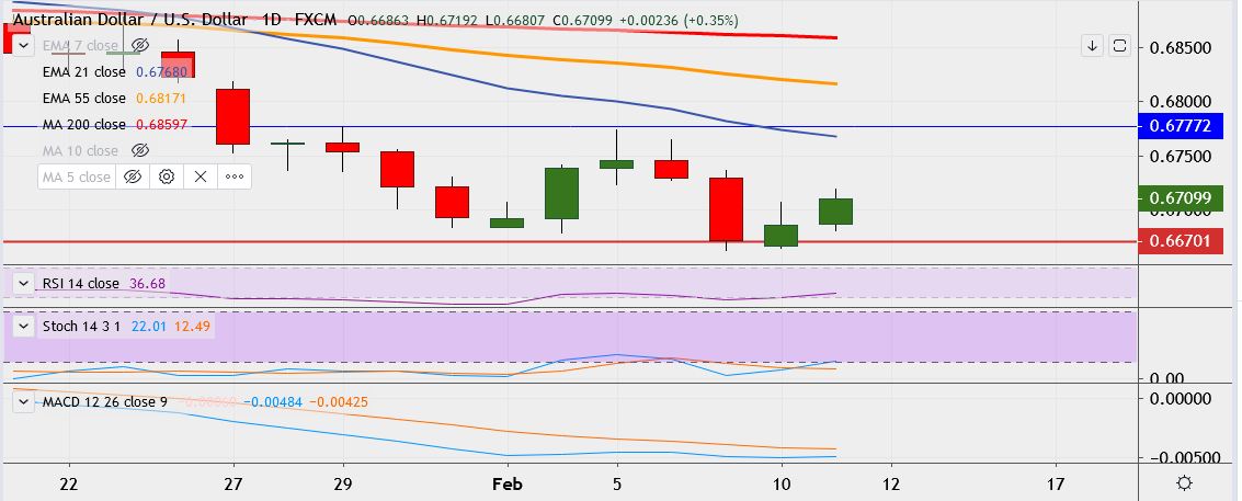 - Immediate resistance is located at 0.6729, a break above could take it near 0.6755.