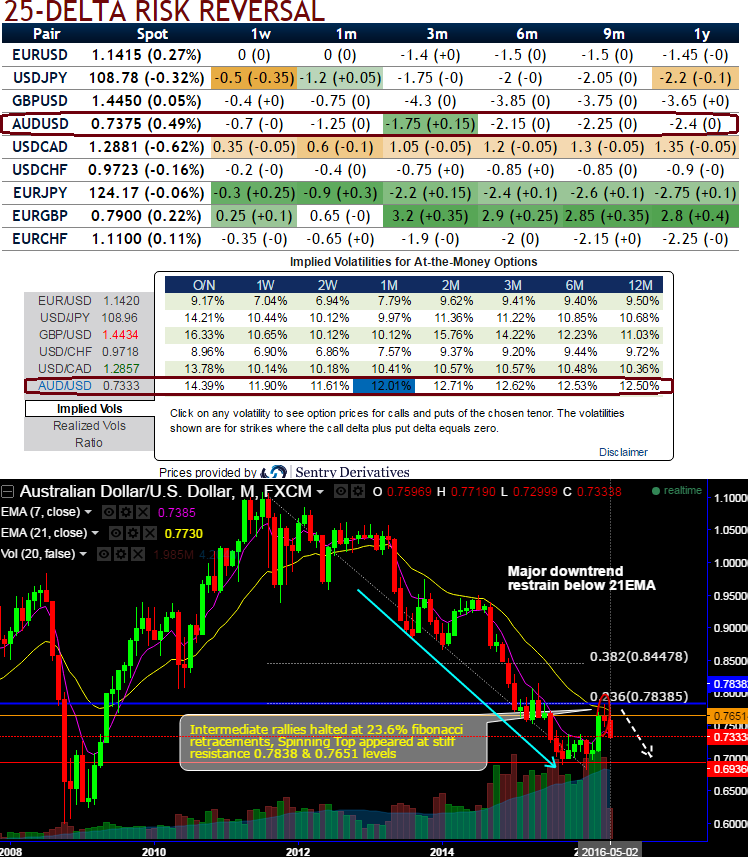 While, we’re still in middle of May month, within a fortnight AUD/USD has changed its intermediate uptrend mood and dropped almost 5.02% or slumps from the highs of 0.7719 to the current 0.7331 levels.