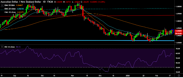 - AUD/NZD is currently trading around 1.0462 marks.