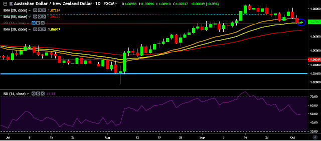- AUD/NZD is currently trading around 1.0704 marks.