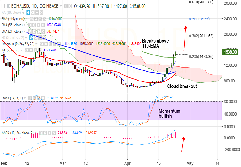 - BCH/USD extends breakout above daily cloud, breaks above 110-EMA.