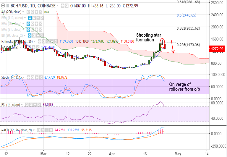 - BCH/USD stalls upside below 1600 mark, is extending weakness from 2-month highs at 1567.
