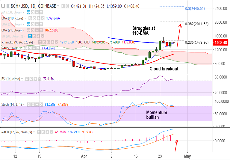 - BCH/USD extends sideways trade, struggles to break above 110-EMA.