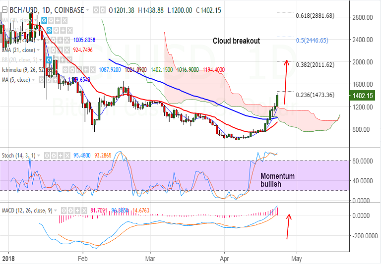 - Price action has shown cloud breakout which raises scope for further upside.