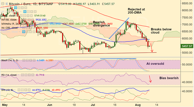 Call update: Our previous call (https://www.econotimes.com/FxWirePro-BTC-EUR-edges-higher-from-4-week-lows-at-5500-break-below-daily-cloud-to-see-further-weakness-1413477) is progressing well.