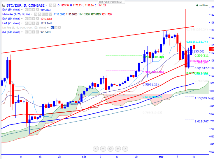 BTC/EUR has plummeted sharply till 920 after U.S Securities and Exchange Commission (SEC) rejected the idea of bitcoin ETF on Friday. The pair decline till 920 after making a high of 1350 levels (COINBASE). It is currently trading around 1155 at the time of writing.