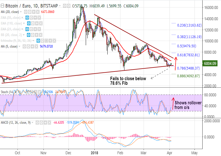 - BTC/EUR is extending upside after holding major trendline support at 5575 levels.