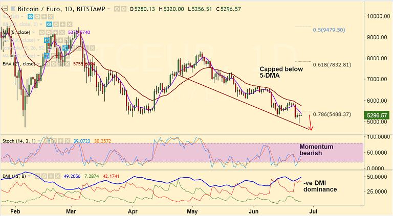- BTC/EUR hit 4-month lows at 4899 on June 24th trade.