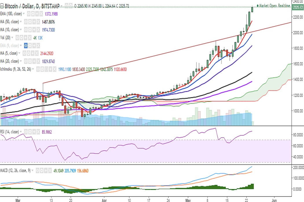 BTC/USD broke above the 2300 mark on Wednesday and is currently trading at 2340 levels at the time of writing (Bitstamp).