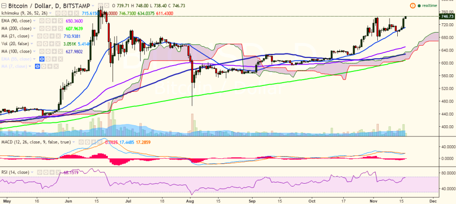 BTC/USD has broken above previous high of 745 levels and is currently trading at 747 levels at the time of writing (Bitstamp).